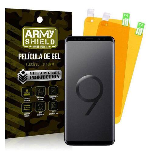 Kit 2 Películas De Gel Samsung Galaxy S9 Plus - Armyshield Kit 2 Películas de Gel - Armyshield Mais uma vez a Armyshield traz o que há de mais moderno quando se trata de Proteção de telas. A nova película de gel Armyshield, é produzida com um material flexível e transparente, que não prejudica o uso do touch screen, além de proteger a tela do seu celular. Características: Fácil instalação, não deixa resíduos, possui todos os furos para fone, carregador, alto falantes, câmera, flash, etc. Espessura: 0. 15mm; considera-se ultra-fina, sem prejudicar o touch-screen; Características: película protetora da tela FRONTAL de gel, transparente, proteção toda tela do celular;Material: soft, flexível, gel; Itens inclusos: 2 - Películas de gel compatíveis com o modelo anunciado 2 - Sachês para limpeza da tela Proteção para seu celular é com a ArmyShield. Não nos responsabilizamos pela má aplicação do produto. Ean: 7898945821186