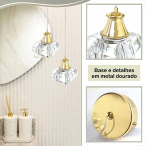 Kit 2 Pendente Cristal K9 Lavabo Metal Dourado G9 Bet13