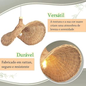 Ideal para salas de estar, áreas de jantar ou varandas, o pendente de rattan proporciona uma iluminação suave e acolhedora, criando uma atmosfera agradável em qualquer ambiente. Seu design intrincado e o uso de fibras naturais garantem que cada peça seja única, destacando-se como um verdadeiro elemento de decoração.