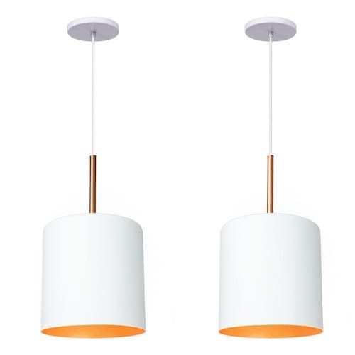 Kit 2 Pendente Lustre Luminária Lisboa Branco Kit 2 Pendente Lustre Luminária Lisboa Branco Os pendentes são uma ótima opção decorativa e moderna, além de deixar a luminosidade mais próxima dos pontos que você almeja destacar, sendo ideais para iluminar mesas de jantar, bancadas na cozinha, mesas de escritório, quartos, lavabos e onde mais você desejar. - Material: Alumínio- Acabamento - Pintura Eletrostática- Voltagem: Bivolt 110/220v- Soquete: 01 modelo E-27- Utiliza 1 lâmpada LED, Fluorescente ou Incandescente- Dimensões: altura 20 cm x diâmetro 20 cm x Acabamento 15 cm- Cabo: 1,5 Metro (regulável)- Canopla (Acabamento para o teto): Diâmetro 12 cm NÃO ACOMPANHA LÂMPADA Marca: Iluminar Ambiente