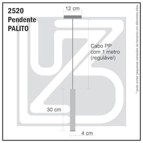 Descrição Técnica: - Modelo: PALITO - Acabamento do corpo: BRANCO - Lampada: 1 lâmpada LED Mini Dicroica com 3w - 2700k - Material: Alumínio Usinado - Tamanho (LxAxP): 4cm x 30cm x 4cm - Cabo: PP com 1m (regulável) - Cor do Cabo: BRANCO - Soquete: GU 10 - Bivolt: Sim - Canopla: Em metal com 12cm, modelo plano e trava cabo regulador do cabo. Acabamento Branco