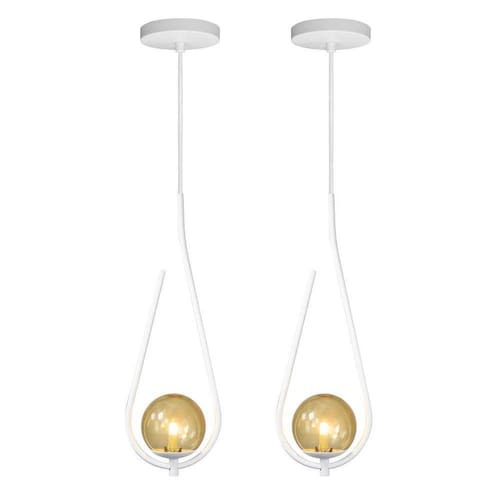 Kit 2 Pendentes Lustre On Drop Branco Globo De Vidro âmbar Lustre Pendente ON DROP, design minimalista ao seu estilo. Descrição Técnica: - Modelo: On Drop - Acabamento: Pintura Térmica - Material: Aluminio e vidro - Tamanho (LxA): 16 cm x 45 cm - Globo: 12cm - Cabo: 70 cm (regulável) - Soquete: Padrão G9 - Bivolt: Sim - Canopla: 12 cm