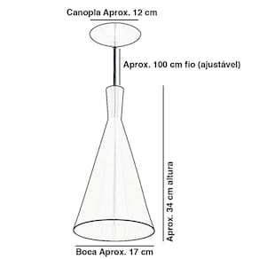 O Pendente adiciona luxo e sofisticação a sua decoração, Sua aplicação é muito versátil podendo ser instalada em sala de jantar, sala de estar, varanda, corredores ou onde a imaginação mandar. Nosso pendente é feito em Aluminio na parte interna, causando um lindo efeito luminoso, Uma peça que vai fechar com chave de ouro a decoração do seu ambiente. É indicada somente para uso interno, Utiliza 1 Lâmpadas E-27. ESPECIFICAÇÕES Material: Aluminio Indicação: Iluminação e decoração Dados Técnicos: -Alimentação: Bivolt -Tipo de lâmpada: E-27 -Peso Aprox. com embalagem: 700gr -Dimensões aprox. do produto: -CORNETA Aprox 34 cm X 17 cm -1 Metro de Fio PP -Soquete de Porcelana -Canopla de Fixação de 12cm de diâmetro.