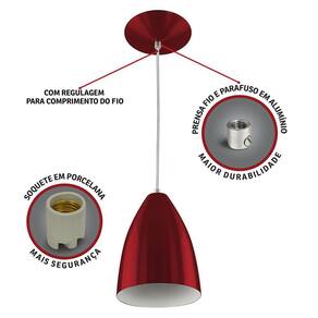 - Pendente modelo Vegas Premium - Dimensões: 14 (largura) x 18,5 (altura) cm - Canopla Redonda aprox. de 13 cm de diâmetro em aluminio - Vegas em Alumínio - Prensa fio em aluminio com ajuste - Aprox. 120 cm de Fio PP - Soquete E-27 de porcelana