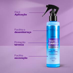 O Penteia Cabelo é um spray protetor térmico de uso diário que promove sedosidade, brilho e maciez aos fios, facilitando o desembaraço e a escovação dos fios.