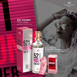 Conteúdo do kit 2 perfume feminino 521 young for her 15ml.