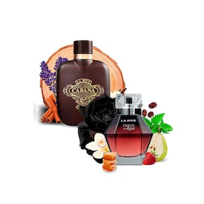 Você está comprando 1 Kit contendo 2 perfumes, sendo 1 perfume masculino Cabana e 1 perfume feminino Taste of Kiss da marca La RiveCABANACabana é um perfume La Rive masculino amadeirado especiado. é uma fragrância para o homem tradicional e másculo. De bem com a vida, A fragrância tem acordes de especiarias, o que revela uma personalidade calorosa. Além disso, notas herbais se contrapõem e tornam o perfume ideal para dias de sol. Gênero: MasculinoFamília Olfativa: AmadeiradoSubfamília: EspeciadoPirâmide Olfativa: Topo: Canela e Cardamomo. Corpo: Eucalipto, Cravo e Lavanda. Fundo: Musgo Branco e Baunilha. Volumetria: 90mlFixação média: De 4 a 6 horas dependendo da pele e climaConcentração: Eau de ToiletteIntensidade: ModeradaOcasião: Perfeito para se usar em dias quentes, sobretudo para curtir o sol e se divertir. Você sabia que perfumes amadeirados fixam por mais tempo na pele pois são menos voláteis que os perfumes que possuem notas cítricas ou aquáticas/frescas. TASTE of KISSDescubra o extraordinário aroma de rosa negra e baunilha submersa em toques frutados de pêra e lichia. Taste of Kiss é uma composição de notas magnéticas que realçam a sensualidade de cada mulher. Encontro de aromas instantaneamente reconhecível com incrível difusão e fixação. Símbolo sensualidade, mistério e amor. Gênero: FemininoFamília Olfativa: Floral, OrientalCom uma ponta de nota verde refrescantePirâmide Olfativa: Notas de Topo: Pera. Notas de Coração: Orquídea Baunilha e Rosa Negra. Notas de Fundo: Patchouli, Papiro, Incenso Lichia e Pralinê. Volumetria: 100mlFixação média: De 6 a 8 horas dependendo da pele e climaConcentração: Eau de Parfum – EDPOcasião: Perfeito para ocasiões onde se quer ser notada, reuniões de trabalho, jantares e balada. Intensidade: Moderada