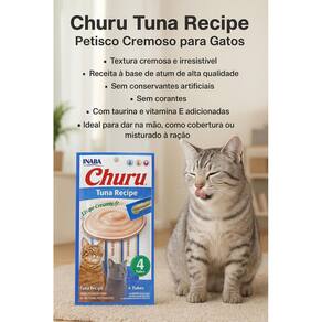 Kit 2 Petisco Cremoso Churu Atum Para Gatos 56g Petisco Cremoso Churu Sabor Atum para Gatos - 56g 4 unidades O Churu é um petisco cremoso de alta qualidade desenvolvido pela Inaba, especialmente para gatos de todas as idades. Sua fórmula à base de atum proporciona um sabor irresistível e uma textura única que agrada até os felinos mais exigentes. Benefícios do produto: