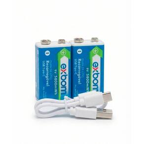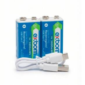 2x Bateria 9V Recarregáveis de Lítio 1x Cabo USB Tipo-C