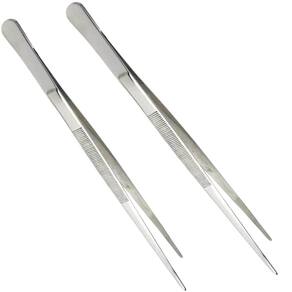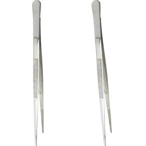 Kit 2 Pinças Culinárias 30cm Inox Lyor Cozinha Profissional Serrilha Reta Pegador Alimentos.