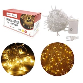 Conteúdo da embalagem: 02 unidades Pisca Pisca 100 Lâmpadas LED Branco Quente Fio Transparente 8 Funções 127V - Master Christmas