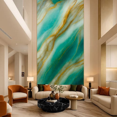 Acabamento Impecável: O design contínuo do mármore garante uma aparência realista, moderna e sofisticada.