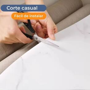 Cada rolo mede 200x60 cm e o desenho do mármore fica contínuo, sem divisórias, proporcionando um acabamento impecável. As placas são feitas de espuma de polietileno/PVC, oferecendo uma aplicação autoadesiva, destacável e de fácil aplicação.