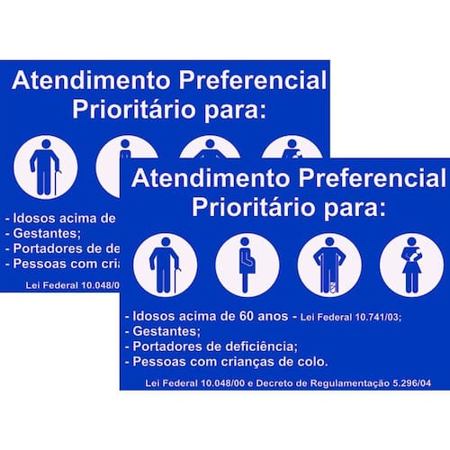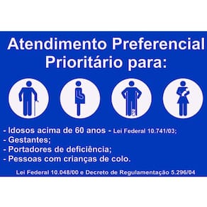 Especificação do produto: Material: PVC Medidas: 30cm X 20cm Fixação: adesivo, pregos ou parafusos Texto: ATENDIMENTO PREFERENCIAL Quantidade: 1 Unidade