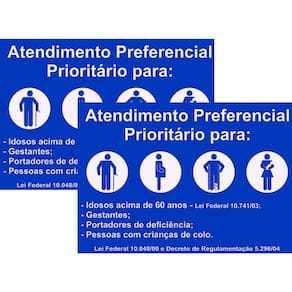 Especificação do produto: Material: PVC Medidas: 30cm X 20cm Fixação: adesivo, pregos ou parafusos Texto: ATENDIMENTO PREFERENCIAL Quantidade: 1 Unidade