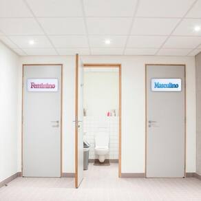 Nossas placas acrílicas feminino e masculino apresentam um design prático e elegante, com suas letras espelhadas, elas são adequadas para sinalização de ambientes como banheiros, vestiários e provadores.