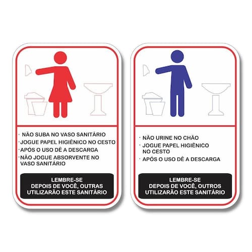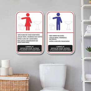 Kit 2 Placas de Sinalização Regras Banheiro Wc 20x13 cm