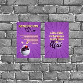 Kit 2 placas decorativas benefícios do açaí 18x27cm Informações do produto tire todas as suas dúvidas no descritivo abaixo: placas decorativas são tendência e uma excelente ideia para decorar ambientes de forma econômica e bonita, elas são leves e extremamente fáceis de instalar; além de servir para a decoração de qualquer ambiente, indo desde estabelecimentos como barbearias e bares, até quartos, sala, área de lazer, churrasqueira, etc. Ou ainda, e por que não, poder quebrar aquele galho tampando imperfeições indesejadas da parede com um toque especial medidas - cada peça tem 18x27cm. Material do papel - papel fotográfico brilhante de altíssima resolução - de 3 meses. Ean: 7892090547991