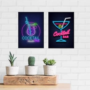 Kit 2 Placas Decorativas Cocktail Bar 18x27cm