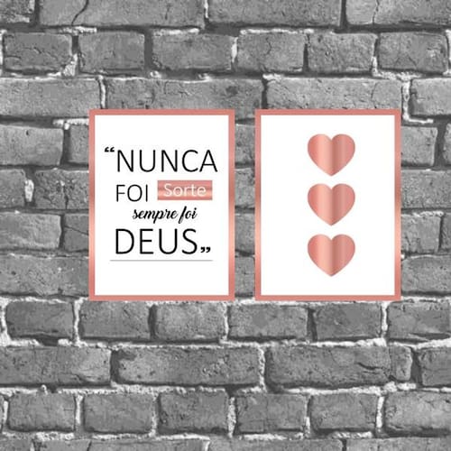 Kit 2 Placas Decorativas Nunca Foi Sorte 18x27cm
