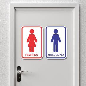 Kit 2 Placas Sinalização Banheiro Feminino Masculino 20x13cm