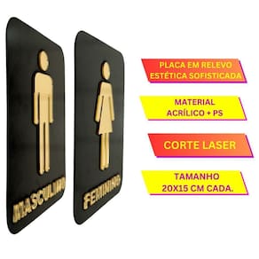 Kit 2 Placas Banheiro Feminino Masculino Acrílico e PS TAM 20x15 cm.