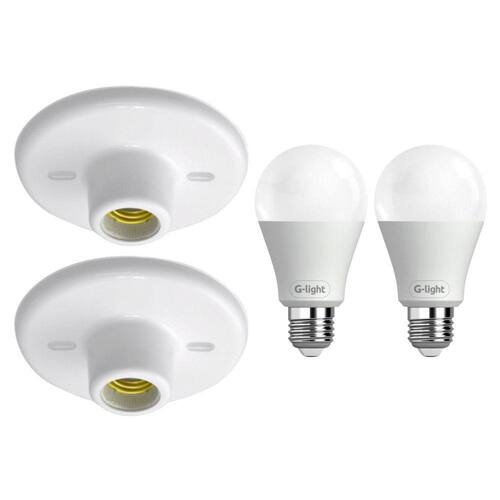 Kit com 2 Lâmpadas Led G-Light e 2 Plafons de Lâmpada Soquete E27: