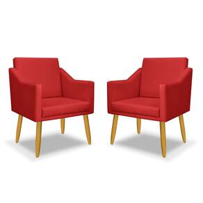 kit 2 poltrona decativa Isa + puff redondo pés palido - Vermelho