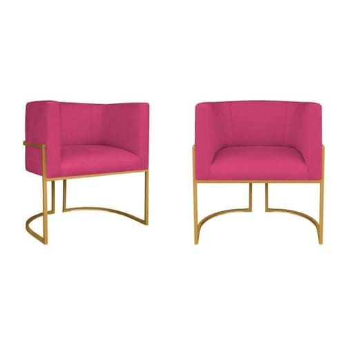 - Detalhes dos Pés: acompanha base de ferro, de alta resistência. Altura do Conjunto: 80 cm Ambiente: null Ambiente Principal: Sala de Estar Cor: Pink/Dourado Informação Complementar: 2x Poltrona Decorativa Base de Ferro Suede Munique Pink/Dourado Largura: 78 Altura: 80 Peso: 14 Profundidade: 62 Necessita Montagem: Não