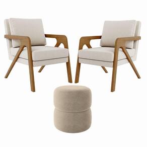 Kit Poltrona com Puff Escritório Luxo Praga Madeira Maciça, Confortável e Sofisticada