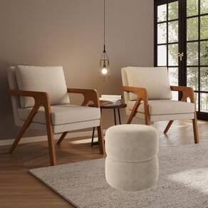 A estrutura em madeira maciça garante resistência e durabilidade, enquanto o design moderno e clean se adapta facilmente a diferentes estilos de decoração. A espuma D23 SOFT oferece o conforto ideal para relaxar ou receber visitas com charme. O puff acompanha o mesmo padrão de acabamento e pode ser como apoio para os pés ou assento extra.