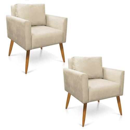 Que tal adicionar um pouco de elegância ao seu ambiente? Temos essa linda Poltrona Aline no tom Bege, ela é um item indispensável na elaboração de uma boa decoração. Perfeita para relaxar, não importa onde for colocada, fica linda no hall de entrada, em volta de uma mesinha de centro na sala de estar, como apoio no quarto ou acomodação extra em escritório. Sem dúvida, ela irá transformar seu espaço em um lugar super harmonioso e moderno. Sua estrutura é confeccionada em madeira de eucalipto proveniente de reflorestamento, o estofamento do assento/encosto é composto de espuma prorelax D-23, revestido em Veludo, um tecido aconchegante, resistente e extremamente luxuoso. Sua sustentação é dada pelos tradicionais pés palito castanho. E para complementar ainda mais esta peça, contém uma almofada do mesmo tom do tecido da poltrona, agregando um toque charmoso e lindo à mobília. Curtiu a nossa poltrona? Aqui você encontra uma variedade de cores, para renovar seu cômodo gastando pouco. Garanta já seu Kit 02 Poltronas Aline!