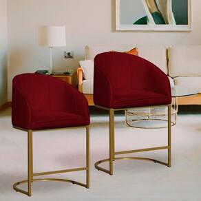 Kit 2 Poltronas Banqueta Decorativa Base Metal Mia Veludo Vermelho - LM DECOR