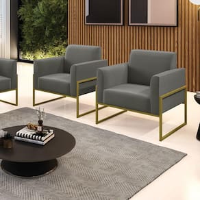 Todo mundo gosta de um ambiente bem decorado, e se for novidade melhor ainda não é mesmo? A D'Rossi, além de entregar beleza, qualidade e confiança aos clientes, ela dispõe das melhores opções em produtos, disponíveis no mercado! Se você quer um produto sofisticado, opte pela Poltrona Marisa. Ela dispõe de um tom lindo no Grafite, uma cor leve, neutra e delicada que combina com qualquer estilo de decoração. Esta mobília fica perfeita na sala, escritório, quarto, varanda coberta e onde mais preferir! Sua estrutura é feita em madeira reforçada de eucalipto proveniente de reflorestamento. No assento/encosto contém um revestimento no tecido Suede, com estofamento em espuma prorelax D-23, garantindo maior conforto ao usuário. A sustentação da peça é dada pela Base Industrial Alta Dourado, garantindo uma resistência melhor, para relaxar o dia todo com mais comodidade. A Poltrona Marisa é ideal, para dar aquele realce que seu ambiente precisa. Tenho certeza que, esse móvel é a melhor compra que você irá fazer. Garanta já seu Kit 2 Poltronas e se acomode da melhor maneira possível!