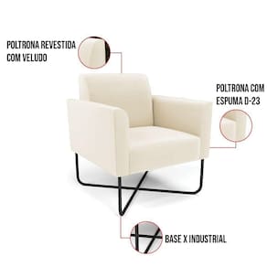 Todo mundo gosta de um ambiente bem decorado, e se for novidade melhor ainda não é mesmo? A DRossi, além de entregar beleza, qualidade e confiança aos clientes, ela dispõe das melhores opções em produtos, disponíveis no mercado! Se você quer um produto sofisticado, opte pela Poltrona Marisa. Ela dispõe de um tom lindo, uma cor leve, neutra e delicada que combina com qualquer estilo de decoração. Esta mobília fica perfeita na sala, escritório, quarto, varanda coberta e onde mais preferir! Sua estrutura é feita em madeira reforçada de eucalipto proveniente de reflorestamento. No assento/encosto contém um revestimento no tecido Veludo, com estofamento em espuma prorelax D-23, garantindo maior conforto ao usuário. A sustentação da peça é dada pela Base X Industrial Preto, garantindo uma resistência melhor, para relaxar o dia todo com mais comodidade. A Poltrona Marisa é ideal, para dar aquele realce que seu ambiente precisa. Tenho certeza que, esse móvel é a melhor compra que você irá fazer. Garanta já seu kit 02 Poltronas e se acomode da melhor maneira possível!