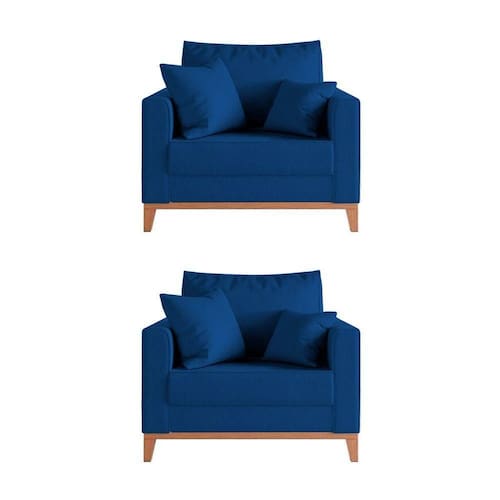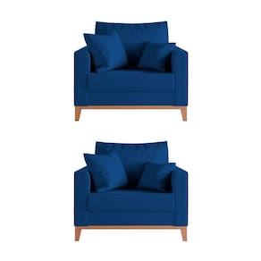 IMAGENS MERAMENTE ILUSTRATIVAS REALIZADO EDIÇÃO, PODENDO HAVER UMA PEQUENA VARIAÇÃO DE COR DEPENDENDO DE CADA TELA OU MONITOR.Kit 2 Poltronas Beny AmamentaÃÃo com 2 Almofadas Base em Madeira MaciÃa Tecido Veludo Azul