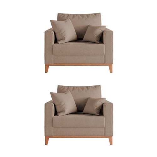 IMAGENS MERAMENTE ILUSTRATIVAS REALIZADO EDIÇÃO, PODENDO HAVER UMA PEQUENA VARIAÇÃO DE COR DEPENDENDO DE CADA TELA OU MONITOR.Kit 2 Poltronas Beny AmamentaÃÃo com 2 Almofadas Base em Madeira MaciÃa Tecido Veludo Bege