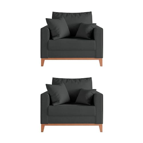 Kit 2 Poltronas Beny Amamentação com 2 Almofadas Base em Madeira Maciça Tecido Veludo Cinza
