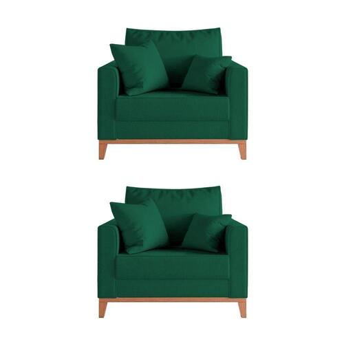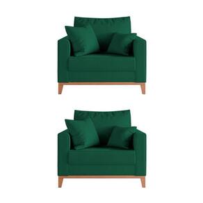 Kit 2 Poltronas Beny Decorativa Com 2 Almofadas Veludo Verde Base Em Madeira Maciça - Cor: Verde A Poltrona Beny é uma excelente aliada na hora de transformar seu lar em um ambiente mais receptivo e bonito. Ela é um mimo para decoração de qualquer cômodo de sua preferência.Tipo: Poltrona Modelo: BenyCor: VerdeTecido: VeludoOBSERVAÇÕES- Estrutura em madeira pinus;- Não nos responsabilizamos no ato da entrega por montagens, desmontagens, instalações de produtos;- Não nos responsabilizamos no ato da entrega por subir escadas, elevadores, nem utilização de guinchos ou equipamentos similares para acesso aos pisos superiores em apartamentos.DIMENSÕES DO PRODUTOAltura: 82cmLargura: 80cmComprimento: 90cmATENÇÃOIMAGENS MERAMENTE ILUSTRATIVAS REALIZADO EDIÇÃO, PODENDO HAVER UMA PEQUENA VARIAÇÃO DE COR DEPENDENDO DE CADA TELA OU MONITOR.Kit 2 Poltronas Beny Decorativa com 2 Almofadas Veludo Verde Base em Madeira MaciÃa Marca: Leonardi Estofados