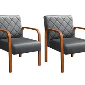 Kit 2 Poltronas Cadeira Decorativa Sala, Recepção Lara Cinza grafite