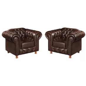 Kit 2 Poltronas Chesterfield Luís XV Vintage Retrô Capitonê Couro Marrom
