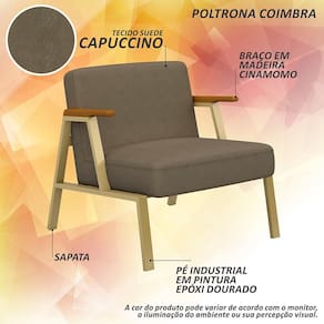 Kit 2 Poltronas Coimbra Estilo Industrial Dourado/cinam/capuccin - M.a - Marrom