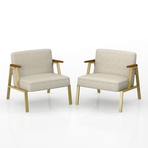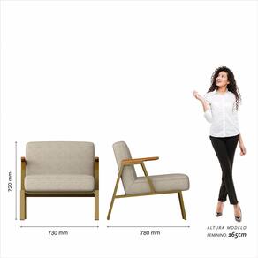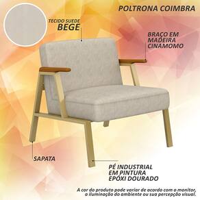 Detalhes Técnicos das Poltronas - Assento e Encosto Tapeçados, Estofados e Fixos - Espuma do Assento e do Encosto: D20 - Tonalidade Estrutura: Dourado/Cinamomo - Tonalidade do Tecido: Suede Bege - Material: Estrutura em Metalon | Braço em Madeira - Medida Poltrona: A: 72CM x L: 73CM x P: 78CM - Medida do chão até o assento: 42cm de altura - Poltrona suporta até 120KG - Montagem: Difícil