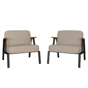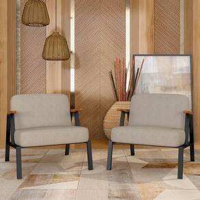 Detalhes Técnicos das Poltronas - Assento e Encosto Tapeçados, Estofados e Fixos - Espuma do Assento e do Encosto: D20 - Tonalidade: Preto Fosco (estrutura)/Cinamomo (braço)/Suede Bege (estofado) - Material: Estrutura em Metalon | Braço em Madeira - Medida Poltrona: A: 72CM x L: 78CM x P: 73CM - Medida do chão até o assento: 42cm de altura - Poltrona suporta até 120KG - Montagem: Difícil