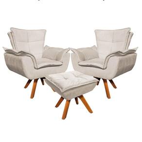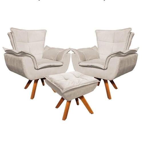 Quer saber mais? Confira!! O Kit 2 Poltronas Decorativas e o Puff Opla são mais do que complementos, são justamente para te oferecer aconchego e praticidade. Ela são produtos super versáteis, proporcionando conforto e elegância. Podem ser utilizadas na sala de estar, quarto, escritório ou recepção, afinal seu design retrô combina com qualquer ambiente. Estrutura em madeira de eucalipto e espuma de alta qualidade, tudo para garantir durabilidade e resistência. Ah, percintas elásticas deixam o assento ainda mais reforçado e seu revestimento em tecido Suede transmite maciez ao toque. Show, concorda?
