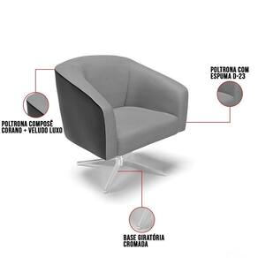 Aqui você encontrará lindas opções de poltronas que combinem com seu estilo e completem o ambiente. A poltrona Stella irá trazer um charme todo especial na sua casa. Composta por espuma mais densa D-23 no seu encosto e no assento, tornando o móvel super resistente, é revestida em Tecido Corano Preto com Veludo no tom Grafite Luxo, que contribui muito no conforto e no seu bem estar, além de ser super fácil de limpar. Você não pode deixar faltar essa poltrona linda na sua casa. Escolha a sua! Se 1 poltrona já é bom, imagine 2! Adquira já o seu Kit Stella.