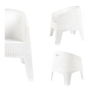 Não é plástico texturizado, mas sim rattan sintético. Pode-se ver através das fibras, como no rattan orgânico. Fabricado com plástico composto virgem 100%. Possui uma alça para fácil manuseio. Todos os nossos produtos plásticos são fáceis de limpar, resistentes aos raios UV e elaborados para não danificar o ambiente.