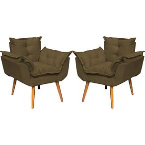 KIT 2 POLTRONAS ALICE SUEDE CORES PÉ TRAPÉZIO 30CM CASTANHO