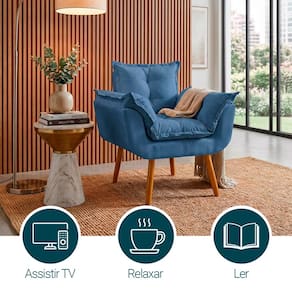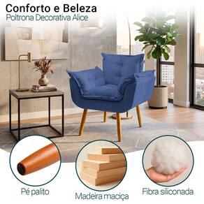 Perguntas Frequentes: - Como calcular o valor de envio? O valor de envio é calculado automaticamente com base no CEP registrado. - Quais opções de tecidos estão disponíveis para este produto? Ele está disponível em Suede, Linho e Boucle. - Qual é a capacidade de peso? A Poltrona suporta até 120 kg.