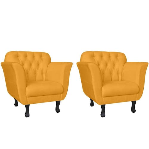 Kit 2 Poltronas Decorativa Dália Suede Amarelo Pés Madeira Ms Decor